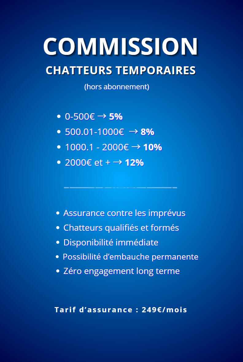 Nous livrons des chatteurs temporaires disponibles à la demande pour assurer la continuité de votre activité, sans engagement long terme